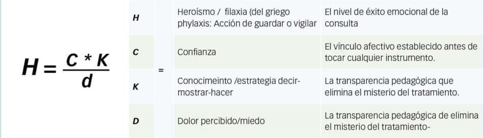 El umbral del dolor en la infancia no es solo una medida física; es una frontera emocional. Para un niño, cualquier estímulo doloroso o invasivo es decodificado por su sistema límbico como un acto de agresión. Para el paciente infantil, el concepto de «beneficio a largo plazo» no existe. Debido a su labilidad emocional, el niño vive en un presente absoluto. Si hay dolor, hay una transgresión a su seguridad personal y genera un trauma neurobiológico que condicionará su salud sistémica de adulto. El caso de Wilbur y Willy Wonka (Charlie y la Fábrica de Chocolates. Tim Burton; 2005) es la parábola perfecta de cómo una odontología rígida y carente de empatía emocional puede fracturar la psique de un niño y alejarlo de la salud por décadas. Hay que poner sobre la mesa el hecho de que no solo se tratan dientes; se gestionan memorias. Tradicionalmente, el héroe es quien interviene en la crisis; sin embargo, la odontopediatría moderna exige la figura del filactor (del griego phylakter, protector), quien no espera a que el daño ocurra para «salvar» al paciente; su heroísmo reside en la protección activa y la profilaxis emocional. Ser un filactor significa blindar la experiencia del niño para que la clínica sea un santuario de salud y no un campo de batalla. Para integrar estos conceptos de forma lúdica y profesional, se propone utilizar la Fórmula del heroísmo (H) como una herramienta de gestión de conducta en el consultorio que permite al profesional jugar con las variables de esta cita: